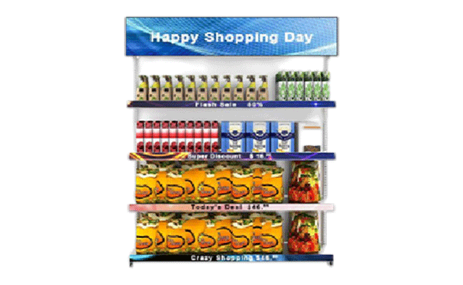 4、動態(tài)定價、交叉銷售:在賣場、超市安裝貨架LED屏,可實現(xiàn)動態(tài)定價、交叉銷售,增加產(chǎn)品銷量。