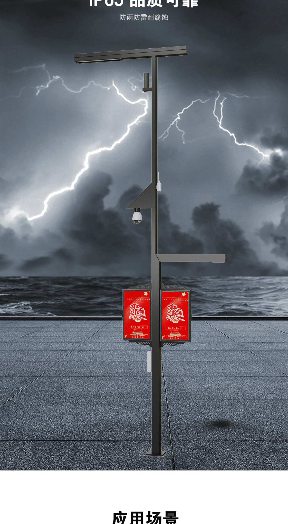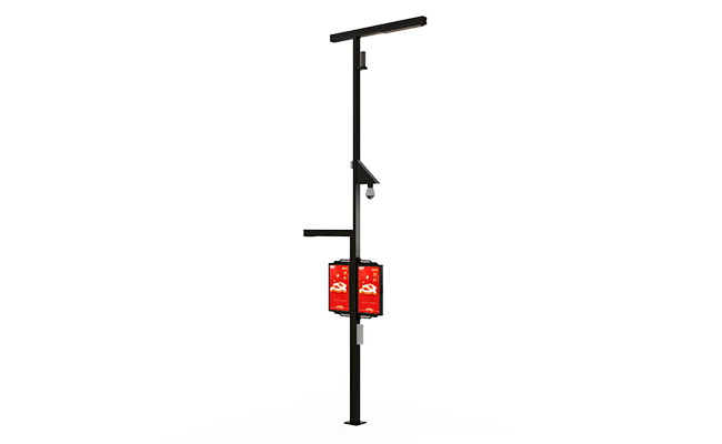 集成了微氣象傳感器、WiFi設備、LED照明、人流監(jiān)控傳感器、5G通訊基站、搶形攝像機、LED燈桿屏、空氣質(zhì)量傳感器、球形攝像機、一鍵報警、井蓋垃圾桶傳感器、水浸傳感器等各種設備多功能多用途燈桿。在接入互聯(lián)網(wǎng)+物聯(lián)網(wǎng)+大數(shù)據(jù)的技術支持下,實現(xiàn)聯(lián)動產(chǎn)業(yè)鏈融合發(fā)展,構建完善的管理系統(tǒng),從而提升設備工作成效,降低人工管控成本。