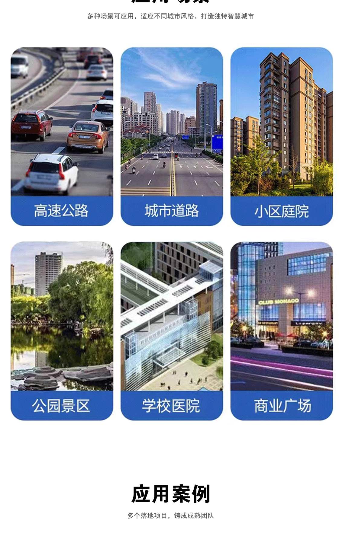 聚光 多功能智慧燈桿 —— 配備環(huán)境傳感、攝像頭、無線 WiFi、戶外 LED 顯示屏、IP 廣播、應急呼叫等硬件,功能多樣。照明方面,采用 AC85~264V 寬電壓輸入和模塊化設計,可按需設計燈頭形狀與改變路燈功率(60W - 250W),支持遠程調(diào)光與監(jiān)控。能進行溫、濕、照度、風力、風向、噪音、PM2.5、PM10 等八大環(huán)境監(jiān)測。無線 Wifi 模塊體積小、覆蓋廣、速度快,無需布線,為運營商提供便捷站點方案。監(jiān)控攝像可對人流量、車流量及特定安全情況進行監(jiān)控,視頻圖像直接傳至服務器。LED 顯示屏可發(fā)布商業(yè)廣告、公益宣傳、公共信息等多種內(nèi)容。一鍵呼叫用于應急通訊,USB 應急充電解決數(shù)碼設備沒電難題,還設有綠色新能源充電功能,解決新能源車充電難,另有 RFID 定位、井蓋檢測等擴展功能。