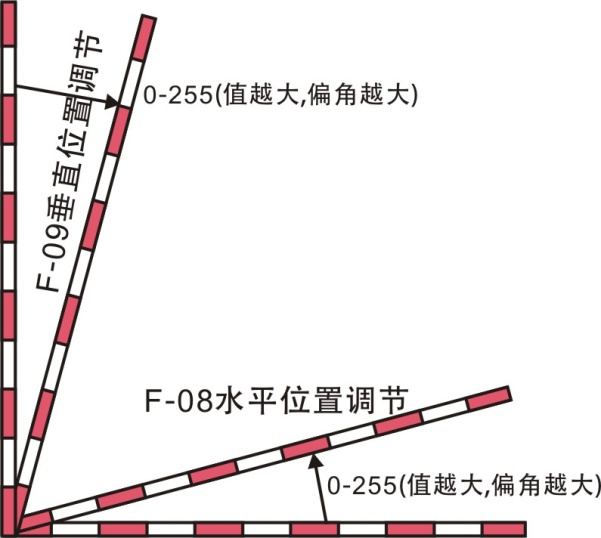 1、通過F-08/F-09調(diào)節(jié)水平位置、垂直位置示意圖