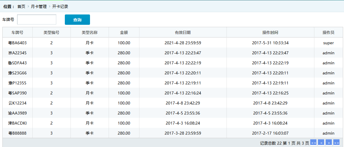 ●開卡記錄 顯示辦理月卡的歷史記錄,如圖: