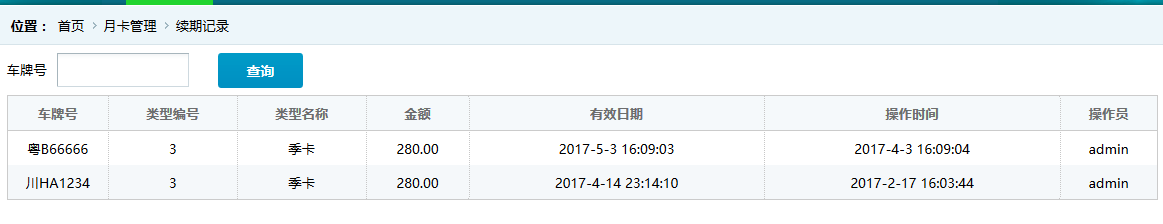 ●續(xù)期記錄 顯示續(xù)辦月卡的歷史記錄,如圖: